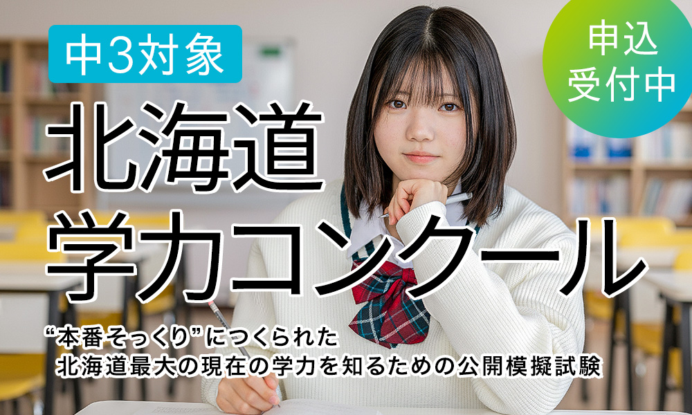 北海道学力コンクールは、本番さながらの問題が揃う模擬試験です。合格可能性判定で、志望校に向けて意識を高めます。 日程:2025年11月22日(土) 場所:緑ヶ丘学院本…