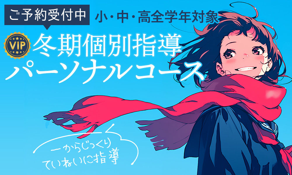 緑ヶ丘学院の「冬期個別指導 VIPパーソナルコース」のご案内です。 小学生・中学生・高校生 全学年対応の完全マンツーマン方式です。 PDFをダウンロード…