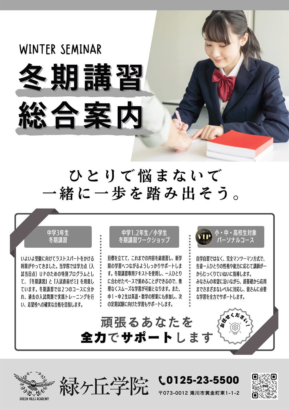 緑ヶ丘学院の冬期講習の【総合案内】です。